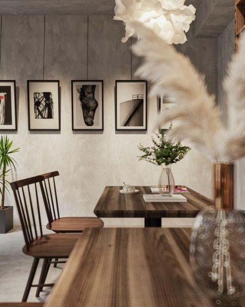 本案以朴素粗旷为基底的艺术描摹,还原生活本色之美,以期记录时光疾驰后留下的痕迹,赋予生活更多诗意的想象空间。水泥柱子、石灰砖墙、棕色原木家居,一切以最本色的姿态在空间呈现,不添加任何杂念。色彩、材质与光影,在这样一个几何生活空间里,都以它最原始最真实的表达形式,共同生发轻盈、安静、惬意又不失艺术的生活气息,融合成一幅温润的画卷,装点着生活,亦装点了内心。