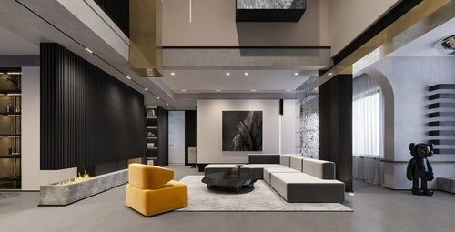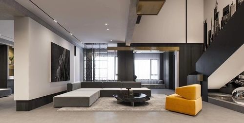 踏入一层即可见阔绰的布局,6.2米的挑高设置,搭配大面落地景观窗,尊贵尺度以及舒适格调不彰自显。延伸感、灯光、材质、形态过渡层面都经过精心拿捏,增添其细节之处的魅力。挑高的一侧立面如同阶梯状渐次内退,书房因势而生,这是尺度上的自然而然,也是对块面关系的灵活统筹。