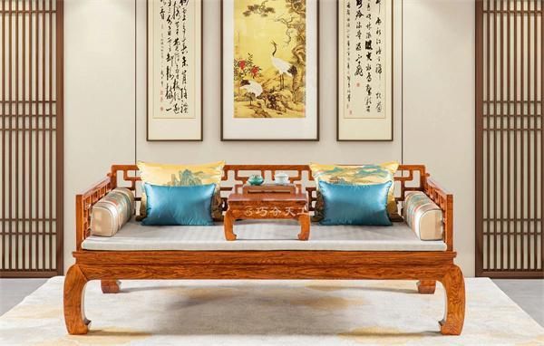 曲尺罗汉床:取法王世襄《明式家具珍赏》,三屏风式床围以几何曲尺攒接,空灵通透,坐卧两相宜的经典家具。