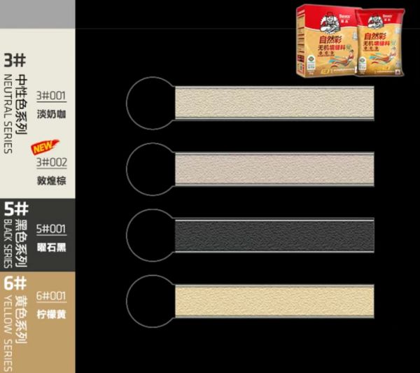 高颜值,很耐看:正如其名,自然彩无机填缝料的色彩源于自然,纯粹且稳定,耐候性好,能有效抵抗紫外线,室内外1~5mm缝宽均适用。