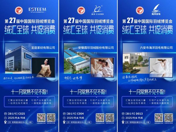 本届羽博会由中国羽绒工业协会与全国工商联纺织服装业商会共同主办,常熟市纺织服装协会、六安市羽毛(绒)产业协会协办,并获中国轻工业联合会等单位支持。第27届羽博会不仅是一场行业的盛会,一次产业的深度对话与资源整合,更是我国羽绒产业在秋冬消费热潮前的一次动员与检阅。无论是寻求供应链伙伴、洞察市场趋势、拓展品牌影响力,还是预热羽绒制品消费市场,这里都将成为全球羽绒从业者不可错过的战略高地。