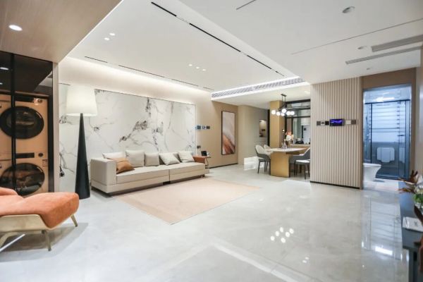 华耐智装于湖北武汉打造绿色智能内装修示范样板间。该项目样板间105m²,从设计规划、工厂预制、现场装配到软装进场,完整交付流程共用时26天;从材料甄选到低碳施工工艺,构建起健康的人居体系;设计上打破常规,引入移动隔断墙系统,实现空间布局的灵活变动与洄游动线,满足居住需求变化,优化空间利用及提升住宅长期价值;科技应用层面,融入智能家居生态系统,为居民营造智能、舒适的生活环境。