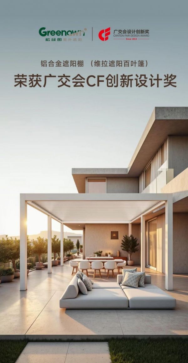 格绿朗维拉遮阳百叶篷荣获广交会CF奖银奖,以创新设计重塑户外生活美学