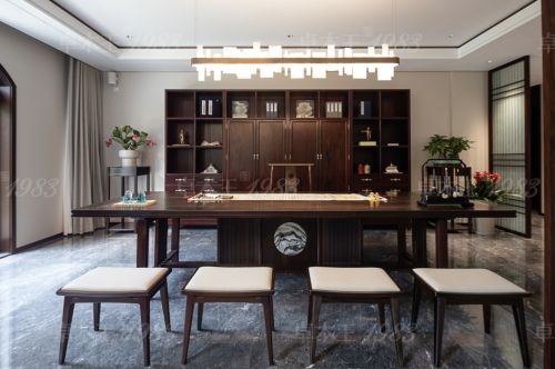 素雅的当代艺术之美,与儒雅的东方美学浑然相融。大红酸枝书桌静立,木纹如古卷般徐徐铺展,每一道纹理皆是自然的馈赠与时光的印记。格栅屏风半掩半透,将光影裁成流动的诗篇。借开放式设计引入窗外景致,让自然文化之“魂”悄然浸润其间。于喧嚣都市中,辟一方安放心灵的静谧之境,真正实现自然文化之“魂”与生活空间的无缝相融。