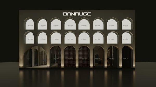 班鲁格展位设计灵感源自意大利文艺复兴时期的拱廊与光影美学,将建筑中的对称、比例与韵律融入收纳系统设计。展位主体以拱门阵列构建空间层次,通过精准的线条分割与材质对比,实现功能与美学的统一,构建出兼具秩序感与呼吸感的沉浸式空间。