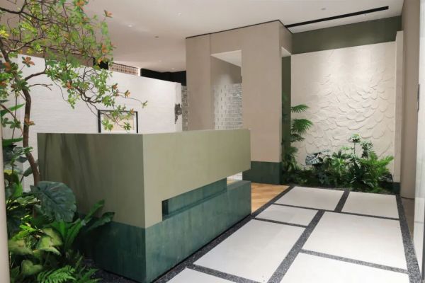 李总认为,装修不应局限于单一材料,而应从空间整体性出发进行搭配,才能营造出层次丰富的视觉效果。也正因为运用了多种材料,叠加人文艺术方面的融合,萨米特新展厅打破了传统瓷砖展厅的冰冷印象,传递出温暖、舒适、灵动且多彩的真实家居氛围,消费者完全可以直接将展厅场景“复制”到自己家中。