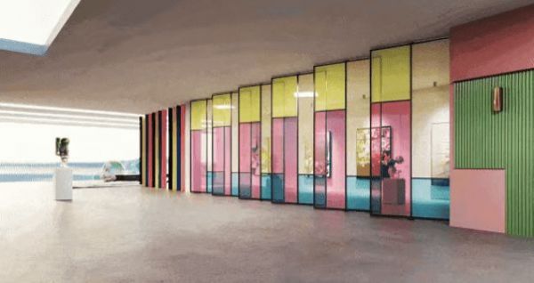 正面望去,玻璃保持纯粹通透,契合极简本质;侧转视角,隐藏的色彩随光线流动渐变,折射出韵律感十足的光斑,让材料的通透质感、光线的灵动变化与空间需求精准契合,完美诠释现代风格的本质美学。