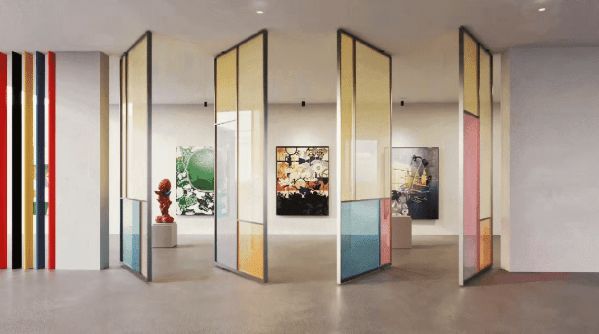 除偏轴开启外,高定艺术门系列学院风格亦可定制推拉、吊趟、中轴及平开开启方式。当门扇闭合时,它成为墙面的一部分,延续空间的几何美学;当门扇打开时,线条随色块方向流动,演绎空间的动态艺术。