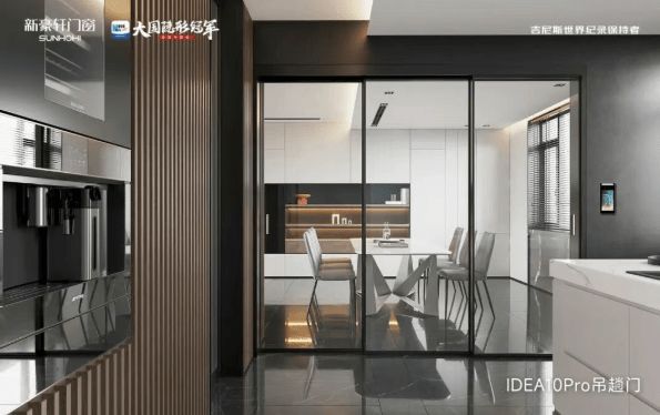 高定艺术吊趟门,10mm光企壁厚,赋予空间通透视野,搭配双向缓冲滑轮,避免闭合碰撞声,防止意外夹手,以细节巧思设计,让你尽享生活的便捷与舒适。