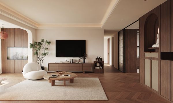 林晓慧:<<沉谧时光>>项目是为美术教师量身打造的家庭居所,位于福建省泉州市,三房两厅两卫格局。设计核心在于将中古风格的沉稳质感与艺术家居所的灵动创意完美融合,为两位成长的男孩和一个热爱生活的家庭构建一个既充满美学熏陶又舒适实用的生活空间。