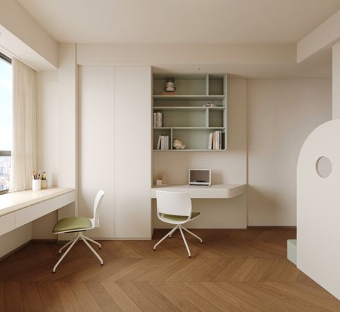 同时,作为美术老师的家,我们预留了大量空间作为“艺术的留白”,让主人的画作、收藏品以及孩子们充满生命力的创作成为空间中最灵动的装饰。