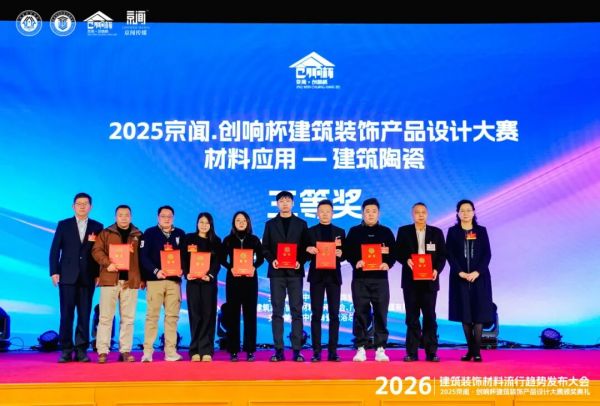 近日,由中国建筑装饰协会主办,中国建筑装饰协会材料应用分会、广东京闻传媒有限公司承办的“2026建筑装饰流行趋势发布大会暨2025京闻·创响杯建筑装饰产品设计大赛颁奖典礼”在全国人大会议中心隆重召开。