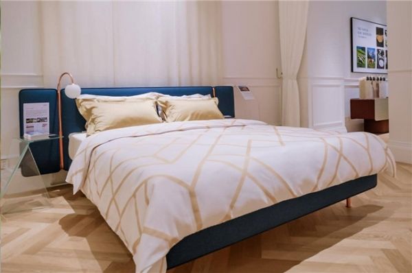 爱比丝区域经理闫媛媛女士为来宾详细解读2026系列新品。被誉为“家纺界爱马仕”的爱比丝,此次新品不仅延续了自然奢适的品牌基因,更在织物质感、图案设计与色彩搭配上呈现突破,营造出兼具艺术感与舒适度的睡眠空间。