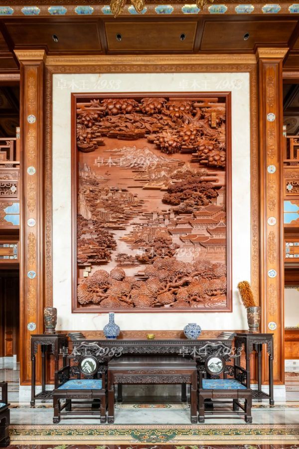 卓木王的红木高定征程,是一场持续攀登文化高度的旅程。卓木王将东阳木雕、景泰蓝、瓷板画、大漆剔红、刺绣等非遗技艺融入当代生活空间,为中式高定赋予深厚的文化与艺术内核。