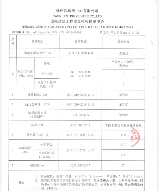基于(CTI华测检测报告BED20Q000516001C)的实测数据,Vanlei万磊微水泥在瓷砖基面上的关键性能表现如下: