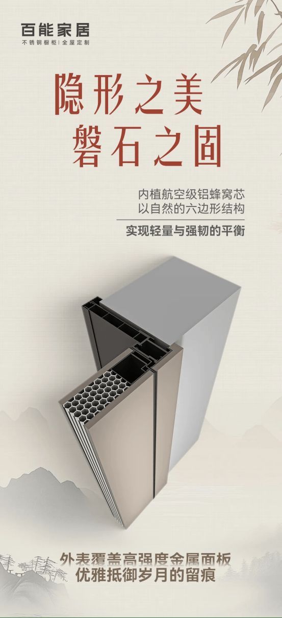 一扇优秀的门,不仅在于外观,更在于内在。百能隐形门的卓越性能,源于其严谨科学的材料与结构。门体采用锌镁合金钢面板、高密度航空级铝蜂窝芯和铝型材等多层材料复合而成,通过创新结构设计充分发挥每一层材料的优势,实现性能的优化组合。