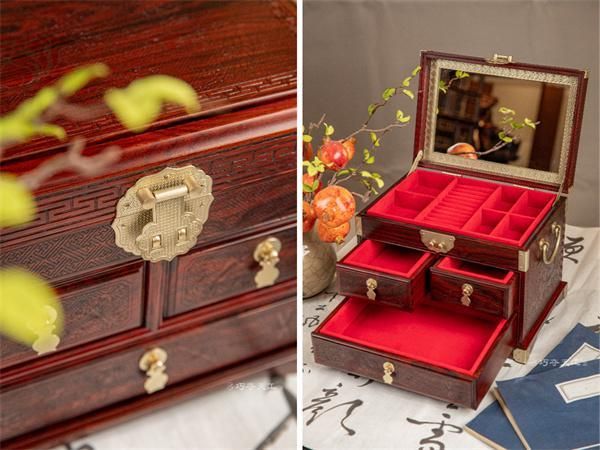 一个女人的首饰盒,装着她的故事。我们为你甄选了三款风格各异的小叶紫檀首饰盒,既是收纳佳品,亦是案头清供。
