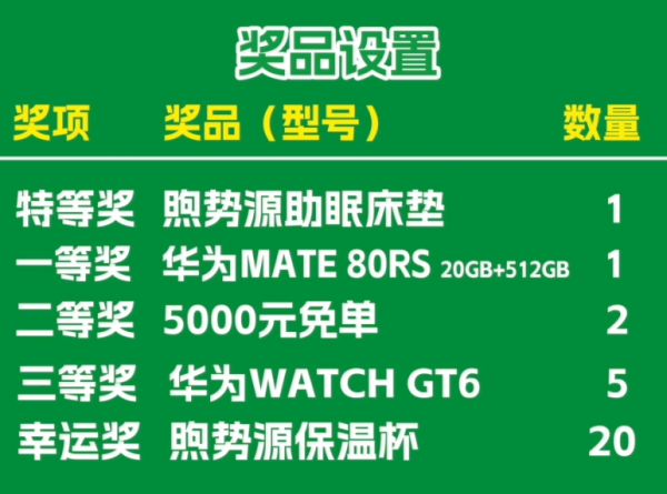 当然,对于大多数消费者而言,最直接的获得感还是来自实打实的优惠。3月14日至22日,集美家居315大促期间,大红门店和定慧桥店同步推出重磅返现活动:购物最高立返26%,单笔最高可拿回5000元现金。更吸引人的是,参与活动还有机会抽取终极大奖——最新款的华为Mate80RS手机。
