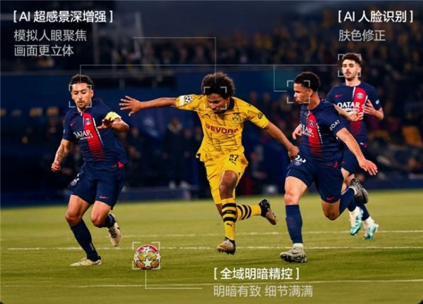 而针对家庭的日常高频使用,它的健康与节能属性同样拉满:功耗实实在在降低了30%,有害蓝光降低了42%。不仅如此,它还是玩家和球迷体验《黑神话:悟空》、观看赛事的完美搭子。当遇到高速运动的足球比赛,AI技术能提供人眼景深追焦,并精准还原赛场草纹;作为“观赛伴侣”,它还能实时识别球星信息并拆解战术。