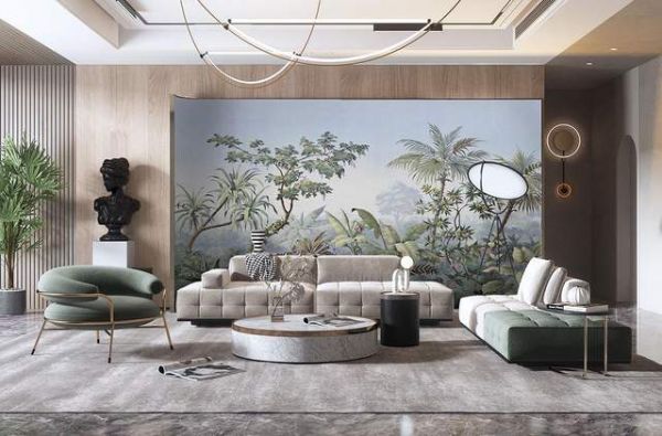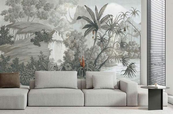 为了缓解现代生活的疲惫感和提升家居装修质感,自然元素往往会被引入家居之中,如侘寂风自然纹理、如田园风自然风景等等,或恬淡,或热烈……壁画也是如此。天洋墙布设计师从大自然深处采集创作源泉,将一方雨林织于家居之中,打造东南亚风情“乌托邦”。