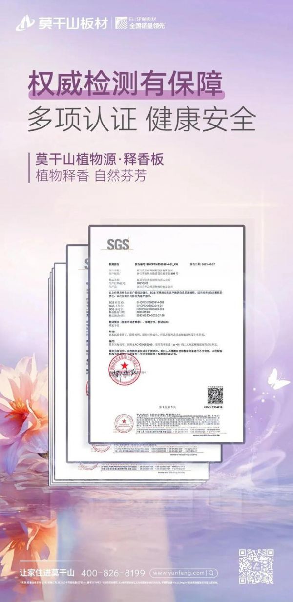 马年住新家,莫干山板材释香家族两大明星产品,还原天然植物的芬芳气息,为家增添一份优雅和品味,焕启专属的植物源健康年。作为CCTV大国品牌,莫干山家居始终以行业标杆之姿坚守环保初心,用植物源技术打造“香愈空间”,让自然疗愈成为新年新家的标配。这个新年,让每一次呼吸都成为享受,愿你和家人在清芬萦绕的植物源健康年里,收获一整年的舒心自在,龙马精神,阖家欢畅!