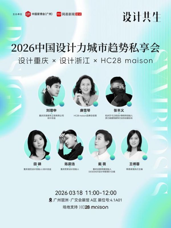 重庆宗灏装饰刘增申、杭州方寸之间张丰义领衔渝浙设计师,将与HC28 maison品牌总经理庚雪琴,在网易家居执行主编王傅蓉的引导下,直面高定设计感与成本控制的博弈,围绕旧改场景下的空间适配、定制化生产体系等热点,探寻产设协作的新共识—这也正是HC28 maison“全景设计”理念在产业协作中的生动实践。