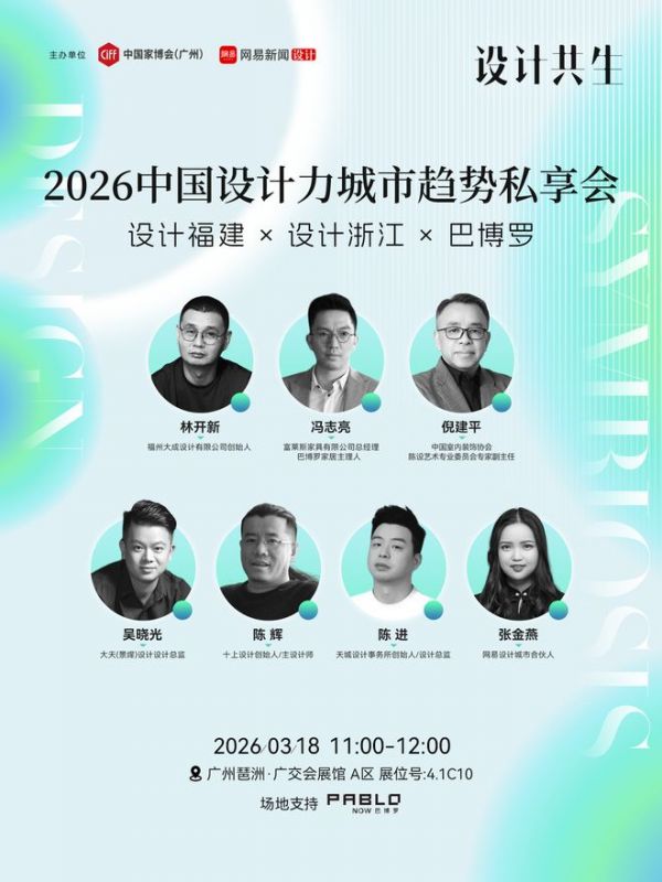 福州大成设计林开新、十上设计陈辉等闽浙设计精英,联动富莱斯家具有限公司总经理冯志亮,由网易设计城市合伙人张金燕担纲主持。话题将直击旧改项目中家具需求的深层转变,从可持续理念到情绪体验,探索设计师与企业如何共同应对旧改预算压缩、交付周期等实际落地难题—这与巴博罗在艺术与生活间寻求平衡的品牌哲思高度契合。