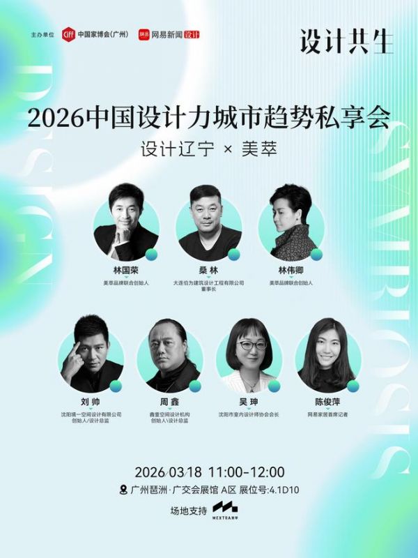 活动将于2026年3月18日11:00-12:00,在广交会展馆A区的三大品牌展位内同步展开。通过“展位参观+沙龙对接+话题交流”的沉浸式互动模式,来自辽宁、重庆、福建、浙江等地的设计力量将与品牌方围坐一堂,围绕城市人居趋势、旧改痛点及产业链对接等核心议题,展开高密度智慧交锋。