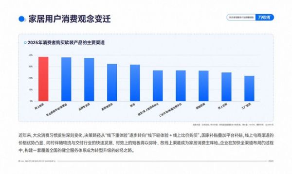 在信息壁垒逐渐瓦解的消费者主权时代,家居消费的决策路径发生了根本性转变。曾经“线下重体验”的模式,已被“线下轻体验+线上比价购买”的新习惯取代。线上渠道凭借价格透明、选择丰富、时效便捷的优势,成为家居消费的主阵地。