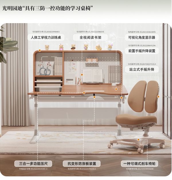 当前,儿童长期不良坐姿、学习环境不合理等问题,易引发脊柱变形、视力下降、肩颈酸痛等健康隐患,同时单一学习场景也难以满足书写、阅读、绘画、手工等多元需求。光明园迪深耕儿童学习桌椅研发,作为《人体工程学儿童学习桌椅标准》主要起草单位,依托 500 余项国家专利与 CNAS 实验室检测、绿色产品认证,持续以技术创新守护儿童健康。