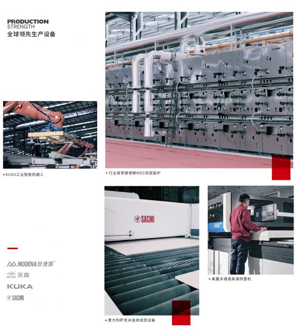 制造硬实力层面,将军陶瓷集团坐拥广东肇庆两大生产基地,占地超3500亩,数十条智能化产线,年产能突破1亿㎡。生产线全线引进意大利萨克米连续成型、摩德娜双层窑炉等国际顶尖设备,从原料到成品实现全流程智能管控。这种规模化、智能化的制造能力,最大程度确保了产品品质的稳定性和供货的及时性。