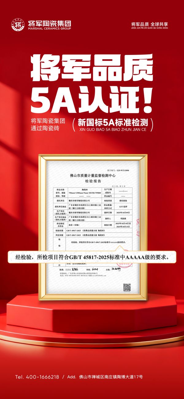 更值得一提的是,将军陶瓷集团“超白、超平、超透”的品质升级并非停留在营销话术层面,而是从原料甄选、坯体配方到烧制工艺的全方位优化。其产品坯体更白、砖面更平整、质感更通透的同时,抗裂耐磨、防污易洁等性能也十分优越,可以说是兼顾美学颜值与实用耐用性,重新定义了“好瓷砖”的标准。