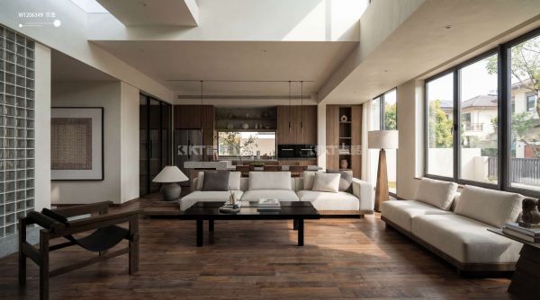 展厅 1F 以全场景空间解决方案为核心,打造不同户型与场景,封装式居家实景空间,实现 “所见即所得” 的沉浸式体验;4F 商业空间区,打造集商务洽谈、设计师沙龙、休闲社交于一体的复合型场域,完成品牌从 “材料供应商” 到 “生活方式提案者” 的价值跃升。