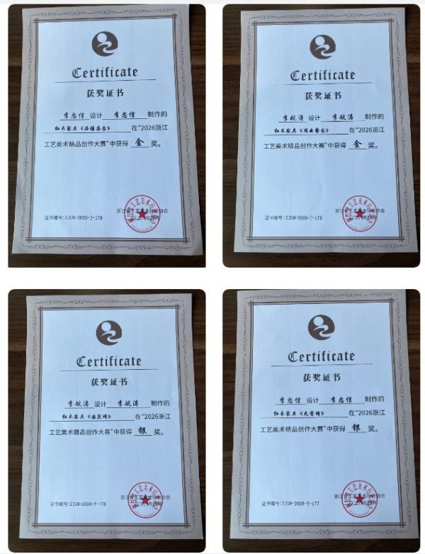 本次拿下2金2银的奖项,是行业对我们工艺实力的认可,更是对李忠信红木一直以来坚持“做好木、做好家具”的鼓励。一块好木,经过数十道工艺打磨,最终成为能融入当代生活、还能代代相传的家居藏品,我们始终相信,好的红木工艺,从来不是放在展台上的标本,而是能走进日常的诗意。